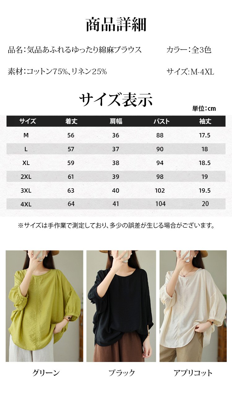 ゆったり綿麻ブラウス